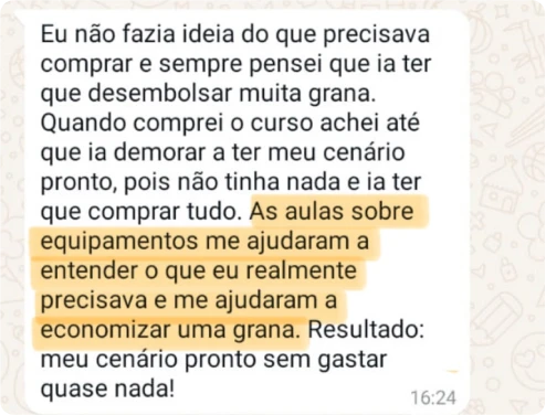 Eu reuni neste Guia tudo o que aprendi em mais de 20 anos criando cenários e testando equipamentos. O Guia do Estúdio Inteligente é um material prático e direto para você descobrir em poucos minutos o que realmente vale a pena comprar e o que não faz sentido manter no seu espaço e orçamento.